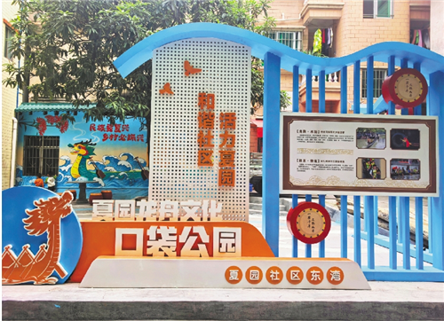 日前,记者实地探访了夏园龙舟文化口袋公园,现场两组古朴雅致的居民议事桌摆放有序,临园墙面以漫画风格绘就的龙舟竞渡、岭南水乡主题涂鸦栩栩如生,公园四周点缀着图文并茂的夏园龙舟文化概述,让居民在休憩时也能感受传统文化魅力。学龄前儿童在家人看护下嬉戏玩耍,欢声笑语为这座承载着社区记忆的公园增添了生机与活力。