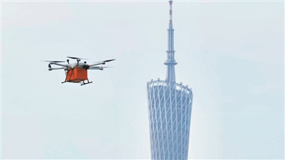 广州日报讯 (全媒体记者邓莉、陈钧圣摄影报道)“第一次体验飞一般的外卖,在APP下单,大概10分钟就收到了。非常好、非常快、非常新奇!”12月25日,广州海珠区的市民刘先生尝鲜了“外卖飞着来”的新体验。