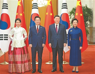 习近平强调,中韩两国长期坚持“以和为贵”“和而不同”,超越社会制度和意识形态差异,相互成就、共同发展。双方应延续这一优良传统,不断增进互信,尊重各自选择的发展道路,照顾彼此核心利益和重大关切,坚持通过对话协商妥善解决分歧。中共二十届四中全会审议通过“十五五”规划建议,为未来5年中国发展擘画蓝图,也为世界各国提供广阔机遇。中韩经济联系紧密,产业链供应链深度互嵌,合作互惠互利,要加强发展战略对接和政策协调,做大共同利益蛋糕,在人工智能、绿色产业、银发经济等新兴领域打造更多合作成果。双方要增进人员往来,开展青少年、媒体、体育、智库、地方等方面交往,让正面叙事成为民意主流。