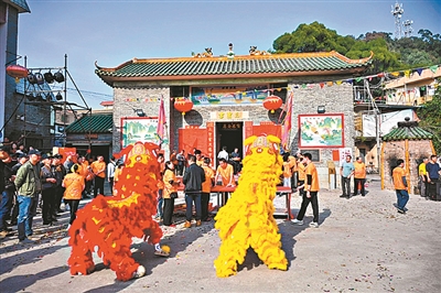 广州日报讯 (全媒体记者耿旭静 通讯员梁贻翅、彭茂茂摄影报道) 12月27日,作为南沙区龙穴街道“海韵龙穴 匠心焕彩”非遗惠民活动的核心环节,“三圣公诞”非遗盛典开幕,与热闹市集相映成趣。