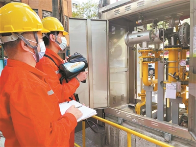 工作人员检查燃气设施。刘春林摄