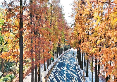 港湾街道天后路的落羽杉迎来最佳观赏期。
