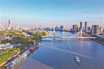 珠江两岸在蓝天下熠熠生辉。广州日报全媒体记者吴子良 摄