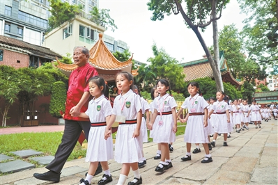创新交流载体,打造湾区融合“新课堂”。市关工委联合穗港澳三地社团、智库,精心设计系列品牌交流项目。2019年首推的“我和我的祖国”穗港澳青少年爱国主义教育系列活动,以“同升国旗、同唱国歌、同上国情课”的创新形式,激发了三地青少年共情共鸣。