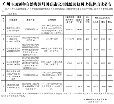 广州市规划和自然资源局国有建设用地使用权网上挂牌出让公告