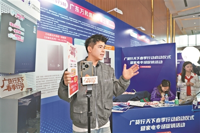 活动当天,来自广州、珠海、佛山、中山等地的30余家广东家电企业带着拳头产品,开启多平台、多矩阵的直播带货;不少电商平台也现场发布了新春优惠促销措施,让消费者得到实惠,让广货走向世界。