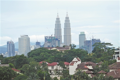 马来西亚吉隆坡双子塔远景。客家人叶亚来被誉为“开辟吉隆坡的巨人”。 摄/广州日报全媒体记者 骆昌威