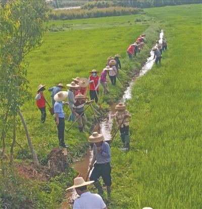 2025年5月,徐闻城北乡村民对农田的沟渠进行清淤。