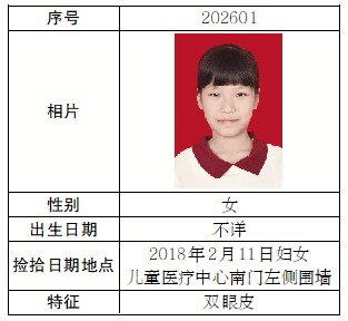 根据《中华人民共和国民法典》有关规定,现将广州市福利院1名弃婴(儿童)情况予以公告,自公告之日起60天内,请其生父母或监护人前来认领,逾期未认领的,将依法办理收养登记,特此公告。