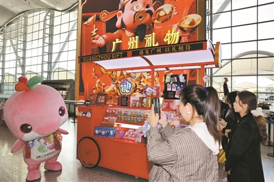 广州白云机场,乘客打卡“大湾鸡”。广州日报全媒体记者吴子良 摄