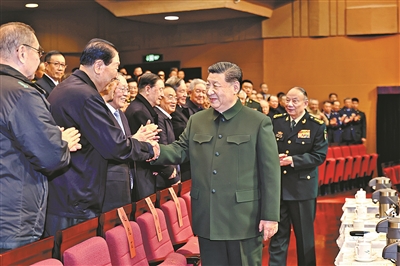 下午4时许,习近平来到老同志中间,全场响起热烈掌声。习近平同大家亲切交流、互致问候,关切询问他们的身体和生活情况,共同回顾过去一年党、国家和军队事业走过的不平凡历程、取得的重大成就。老同志们一致表示,要更加紧密地团结在以习近平同志为核心的党中央周围,坚持以习近平新时代中国特色社会主义思想为指导,深入贯彻习近平强军思想,深刻领悟“两个确立”的决定性意义,坚决做到“两个维护”,贯彻军委主席负责制,弘扬光荣传统、永葆政治本色,坚定信念、勇毅前行,为如期实现建军一百年奋斗目标、高质量推进国防和军队现代化作贡献。