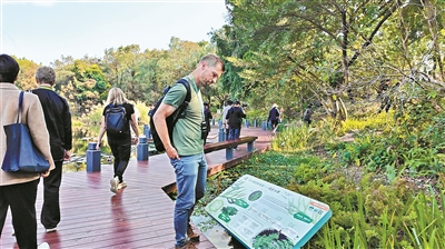 在海珠湿地,嘉宾Karl Yager在一处植物介绍展板前驻足良久。他告诉记者,由于内容与自己熟悉的专业领域相关,他与同事们都沉浸其中:“我们对这些介绍非常感兴趣。”展板不仅配有图片,还提供清晰的中英双语说明,为外国游客提供了极大便利。Karl分享道:“之前在广州的儿童公园,我就注意到那里有详细的英文标识和介绍;现在在海珠湿地公园,每种植物的英文说明也都很详尽,这让我感到非常舒适。广州在这方面做得非常出色。”