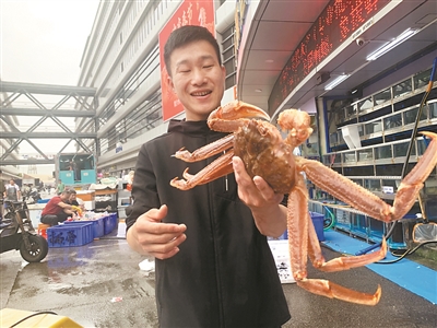 “今年春节海鲜价格总体稳定,中高端海鲜价格同比下降了10%!所以过年吃海鲜很划算!主要原因是供应充足,货源也很稳定。”泰然水产负责人陈先生说,松叶蟹每斤160元,一只约2~3斤重,每天能卖出2000~3000斤;帝王蟹每斤220元左右,零售批发一个价,现在每天出货稳定在2000斤至3000斤,目前发货最远去到新疆,“只要客户有需要,我们都能专业打包,确保海鲜水产新鲜送达。”