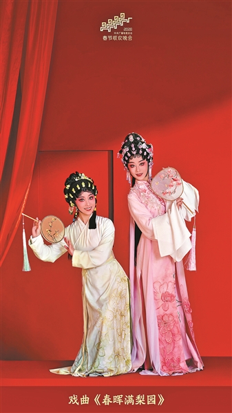 今年春晚的戏曲节目,以“老中青”三代同台为呈现形式,既有孟广禄、谭孝曾、张幼麟等老一代艺术家,又有正当时的中坚力量,也有青年一代与小学生。节目通过舞台立体空间的升降变换及多位置、多机位切换,串联起京剧、豫剧、评剧、越剧、粤剧等多个剧种的选段。