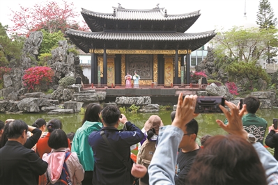 粤剧艺术博物馆精彩的表演吸引市民游客拍照打卡。