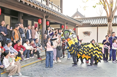 春节前夕,广东民间工艺博物馆(陈家祠)在局部灰塑修缮中复原了站在后西厅东南垂脊上的一位“小神仙”,让他“回家”过年。回家过年的小神仙吸引了很多游客拍照打卡。据馆长黄海妍介绍,春节假期前五日入馆人数均在1.2万人以上,其中2月16日、17日人数均突破1.4万人,目前直到初六的门票都已售罄。陈家祠蔚为大观的岭南传统建筑景观和丰富的馆藏还吸引了众多外籍游客,成为让世界了解广东、了解广州的窗口。