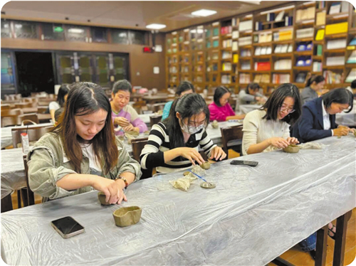 海珠区文明(青年)夜校开展新时代文明实践活动,体验陶艺雕塑文化。