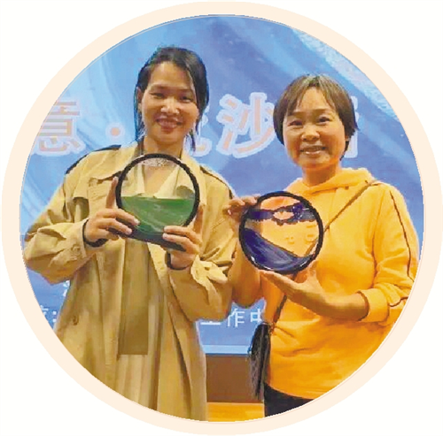 文明(青年)夜校学员展示自己的手工艺作品。