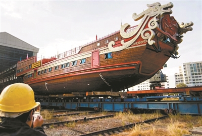 今年2月20日,珠江游旅客量4.54万人次创历史新高,而担任珠江游使命的,包括“南海神·广州日报”号等多艘游轮,正是由江门造船厂在本世纪初制造的。“南海神·广州日报”号是广东省第一艘仿古机动游船,也是全国首艘配备风帆的现代游船,由江门造船厂全程承建。2005年7月30日举行开工仪式,2006年1月16日在江门蓬江河成功下水,同年4月在新会银洲湖完成试航,该船总长48米、宽12.8米,排水量625吨,整体为三层结构,兼具古广船的经典形制与现代船舶的安全舒适。船体采用钢制结构+实木包裹工艺,既稳固耐用,又还原古船风貌;三面最高达32.5米的巨型风帆,气势恢宏;为提升航行体验,造船厂创新性采用军舰级发动机弹性减震技术,大幅降低噪音与震动,在国内游船中尚属首次。