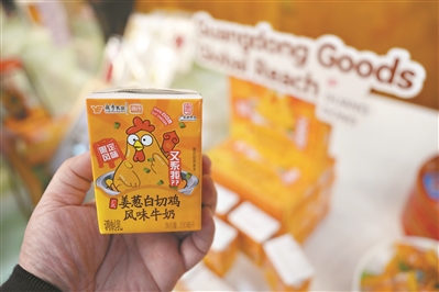 “广东味”,也可以是“鸡有鸡味,奶有奶味”。之前卖断货的“姜葱白切鸡风味牛奶”,以经典甜品“姜撞奶”为基底,融入白切鸡蘸料的姜葱咸香,“识货”的记者看到都会心一笑,相互推荐:“你来一杯!”