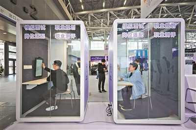 活动现场的AI面试舱。广州日报全媒体记者陈忧子 摄