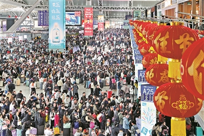 铁路作为春运“主力军”,迎来了客流高峰。2月当月,铁路完成旅客运输量1601.51万人次,同比劲增52.4%。广州南站、广州白云站等枢纽站点,日均客流屡创新高。