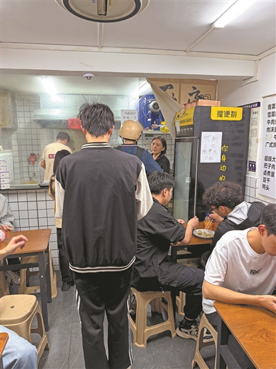 在天河上班的一名女士点了一份水饺和一份面。“没吃过那么实惠的面,有机会还会再来。”记者在店铺里待了两个多小时,食客络绎不绝,不少人站在店外排队等位。记者发现,到店的顾客大多是年轻面孔。