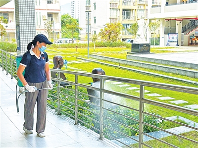 近期天气炎热且多雨,蚊子繁殖速度加快,校园内的花草植被及小水体易成蚊虫栖息和繁殖地。近日,记者在云浮实验小学看到,校园内张贴着防蚊宣传海报,普及蚊虫危害及防蚊技巧,以提升师生防护意识。此外,教职工与保洁员分工协作,细致清扫地面、清理积水,并对草丛、下水道、教室等区域进行蚊虫消杀。“我们组织部分行政人员和后勤人员对校园进行了常态化的‘清’和‘防’,计划在开学前几天,再请专业消杀人员进行地毯式消杀,为师生营造一个干净、整洁、安全的校园环境。”云浮市实验小学副校长朱何燕表示。