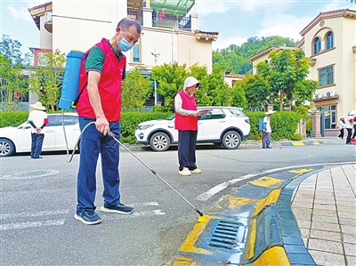 近日,云城区高峰街道办牵头凤凰社区居委,联合碧桂园服务云浮分公司开展社区防蚊灭蚊大行动,26名党员志愿者参与。当天,共对6000多平方米区域进行了有效消杀。