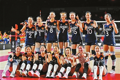 8月25日,中国队球员在比赛后合影。 当日,在泰国清迈举行的2025年世界女排锦标赛F组比赛中,中国队3比1战胜哥伦比亚队。 (新华社记者侯昭康摄)