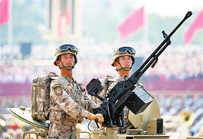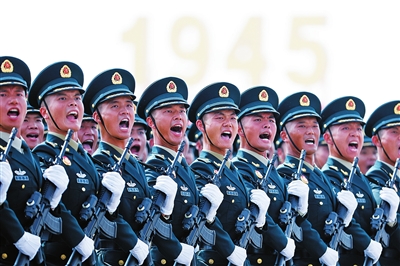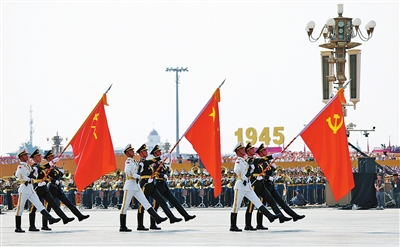 这次阅兵,是对中华民族巨大牺牲的深切缅怀。抗战英模部队的一面面战旗,承载着抗日英雄的牺牲奉献,镌刻着保家卫国的光辉事迹。中国人民抗日战争是一场国家实力极不对称、以半殖民地半封建弱国打败帝国主义强国的正义之战。在那场事关民族危亡的战争中,中国军民伤亡超过3500万人。一个民族用鲜血和生命换来的和平何其沉重、何其珍贵。以阅兵的形式深切缅怀巨大牺牲,牢记由鲜血和生命铸就的中国人民抗日战争的伟大历史,在历史的守望中汲取勇毅前行的力量。