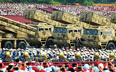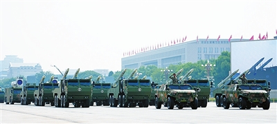 远程火炮方队接受检阅。(新华社记者 张涛 摄)