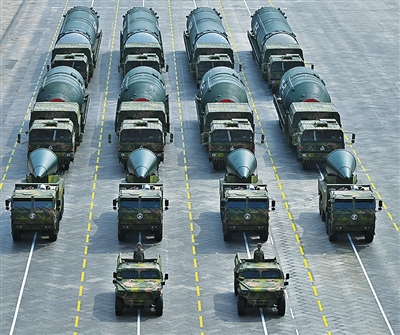 核导弹第二方队接受检阅。(新华社记者 张铖 摄)