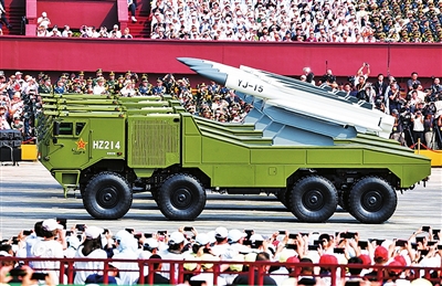 反舰导弹方队接受检阅。(新华社记者 张涛 摄)