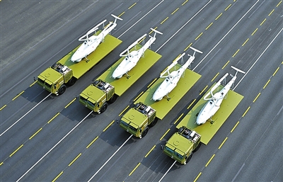 空中无人作战方队接受检阅。(新华社记者 任鹏飞 摄)