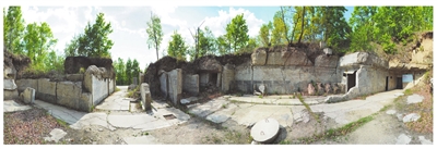 向东北方向驱车约40公里,胜山要塞残破的军事工程在夏日的光影中面目狰狞。这座要塞又称霍尔莫津要塞,是侵华日军“第五国境守备队”1934年开始构筑的军事堡垒,由胜武屯村上大队本部、胜山主阵地、相模山阵地构成,地下指挥中心、仓库、兵舍等工事至今结构完整。