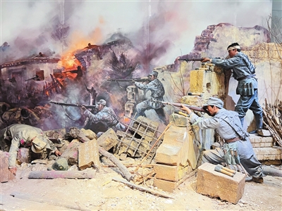 步入纪念馆,一组复原林子里战斗场景的雕塑引人注目:矮墙后,战士们举枪射击,地上散落着步枪和手榴弹,诉说着战斗的激烈。