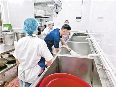 为提升送水效率,消防员迅速与学校工作人员沟通,制定“食堂优先、分点供应”的送水方案。首先将水输送至食堂储水池(箱),保障膳食制作用水充足,随后为卫生间蓄水池注水。此外,还在教学楼、办公楼前设置临时供水点,利用消防水带连接水龙头,方便师生取水。