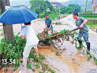 受台风“塔巴”带来的持续强降雨影响,云安区富林镇辖区内多处出现大面积水浸与树木倒伏。镇党委政府高度重视,组织全体镇村干部迅速下沉至辖区16个村(社区),全力以赴投入抢险工作,确保道路畅通。(云浮融媒记者钱枫通讯员李松带摄影报道)