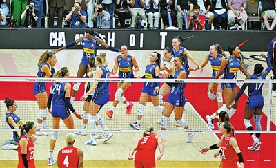 当日,在泰国曼谷进行的2025年世界女排锦标赛决赛中,意大利队3比2战胜土耳其队,获得冠军。