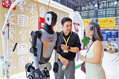 9月12日,观众在展会现场了解智能机器人。 9月12日,2025深圳国际智慧养老产业博览会在深圳会展中心(福田)开幕。展会汇聚了来自全球的260余家养老企业,集中展示智慧养老产品与系统性解决方案2000余项,覆盖智慧居家、智能服务机器人及康复辅具、康养旅居等领域。 (新华社记者梁旭摄)