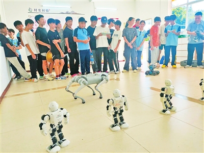 现场展出了机器狗、跳舞机器人、机甲大师等一系列前沿科技设备及科普展板,引起了学生们的浓厚兴趣。在工作人员引导下,学生们通过亲手操作科普仪器、参与人机互动游戏、观看科普展板等方式,在实践中感受科技魅力,实现了“在玩中学、在学中悟”,有效激发了对科学探索的热情和创新思维。