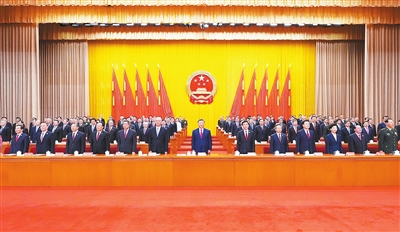上午10时30分许,在欢快的乐曲声中,习近平等领导同志走上主席台,全场响起长时间的热烈掌声。