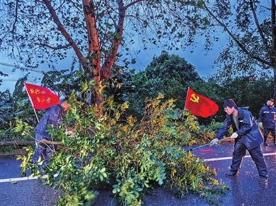 在风雨中,党员干部挺身而出,成为抗击台风的主心骨。各地出现树木倒伏、道路积水等险情后,交通运输部门应急队伍迅速出击,全力保障交通命脉畅通。公安民警辅警逆风而行,在危险区域巡逻警戒,及时转移受困群众,处理各类突发险情。南方电网广东云浮供电局在保障本地电力供应的同时,迅速抽调195名业务骨干组成应急抢修特勤队,携带发电车等专业装备紧急驰援受灾更重的阳江市,支援当地电力恢复工作。