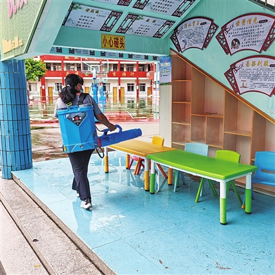 9月25日上午,云浮市第二小学校本部组织人员对校园环境进行全面消杀,保障师生安全顺利返校。当日,云浮市区各中小学校通过全面开展校园安全排查、环境消杀及教学准备工作,为如期复课筑牢安全防线。(云浮融媒记者董楹黄宇摄影报道)