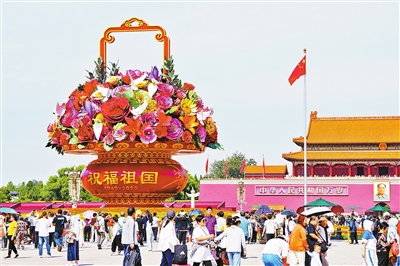 “祝福祖国”大花篮亮相天安门广场