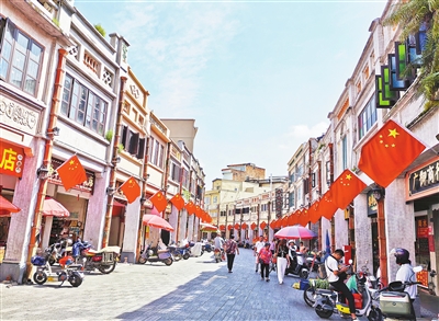 连日来,市区沿街商铺、街道两旁等,悬挂满一面面鲜艳的五星红旗,耀眼的“中国红”将城区装点得热烈而庄重,处处呈现着一派喜庆的节日氛围。