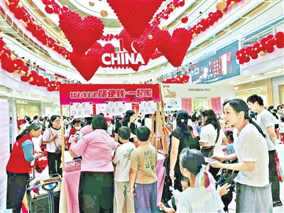 10月1日,市区吾悦广场内人流如织。 国庆中秋假期首日,云浮城区处处洋溢着浓厚的节日氛围,市民游客在欢声笑语中尽享节日欢乐,感受美丽云浮的魅力。 (云浮融媒记者陈树清摄影报道)