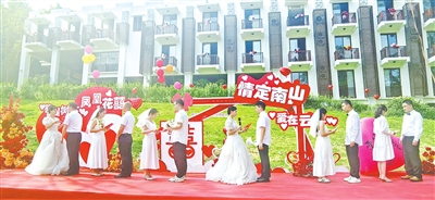 活动现场还设有“甜蜜市集”,涵盖婚宴预订、婚纱摄影、家居用品、文旅消费等多个展区,为新人提供一站式婚庆服务。婚姻家庭辅导、金婚故事展示、DIY喜糖包装等互动区域也吸引不少新人参与,现场氛围热烈而温馨。