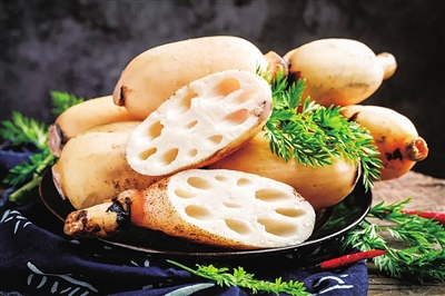 藕性味甘、性凉,主要补给部位为中焦,具有益气力、养神的作用。可散瘀血、凉血止血、清热生津。熟用时微温,具有益血生肌、止泻、补益脾胃的功效。藕在块茎类食物中具有较高的含铁量,适用于缺铁性贫血患者。莲藕具有较低的含糖量,且食物纤维和维生素C含量较高,适用于糖尿病、便秘及肝病患者。